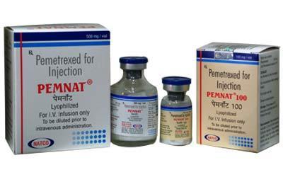 Pemetrexed 100mg/500mg Injection Pemnat manufactured by Natco Pharma India used in the treatment of malignant mesothelioma & Locally advanced or metastatic nonsquamous non-small cell lung cancer. Pemetrexed Injection interferes with the growth of DNA and RNA of the cancer cells by substituting their building blocks. It prevents the cancer cells from growing and multiplying.